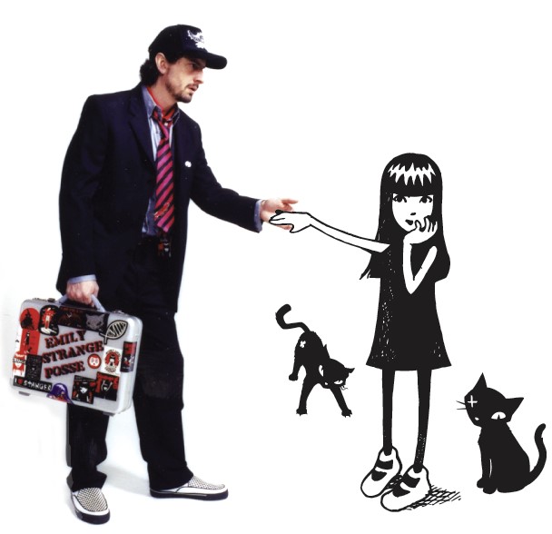 Emily the Strange llegó al mundo en 1991 de la mano de Nathan Carrico, que la diseñó para los monopatines Santa Cruz, en California. Muy pronto cobró forma como pegatina distribuida en conciertos y tiendas de discos y de monopatines para promocionar Cosmic Debris, la marca de ropa creada por el artista Rob Reger, el piloto de carreras Matt Reed y el propio Carrico.