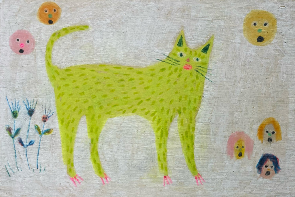 Desde gatos dentudos, pasando por cuervos guardianes, a plantas antropomorfas y rostros incorpóreos, la obra de McGrath se acerca mucho a los trabajos de pintores llamados “primitivos” llenos de simbolismo. Combina varios materiales, como grafito, pintura al óleo y óleos en barra, tinta china y pinturas acrílicas sobre una amplia variedad de superficies, entre ellas la madera, el lienzo y el yute.