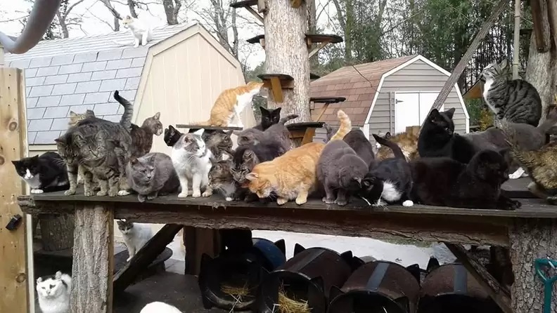 En otra entrevista de hace cinco años dijo que solo en comida se gastaba unos 2.000 dólares al mes, lo que no nos sorprende porque llegó a tener 300 gatos en el santuario. Además de la comida, estaban los cuidados veterinarios, toda la instalación requerida para que tantos gatos estuvieran cómodos, durmieran sin pasar frío y, lo que quizá olvidamos, el enorme trabajo que suponía mantener el limpio santuario.