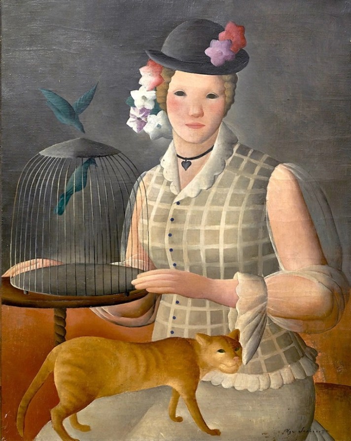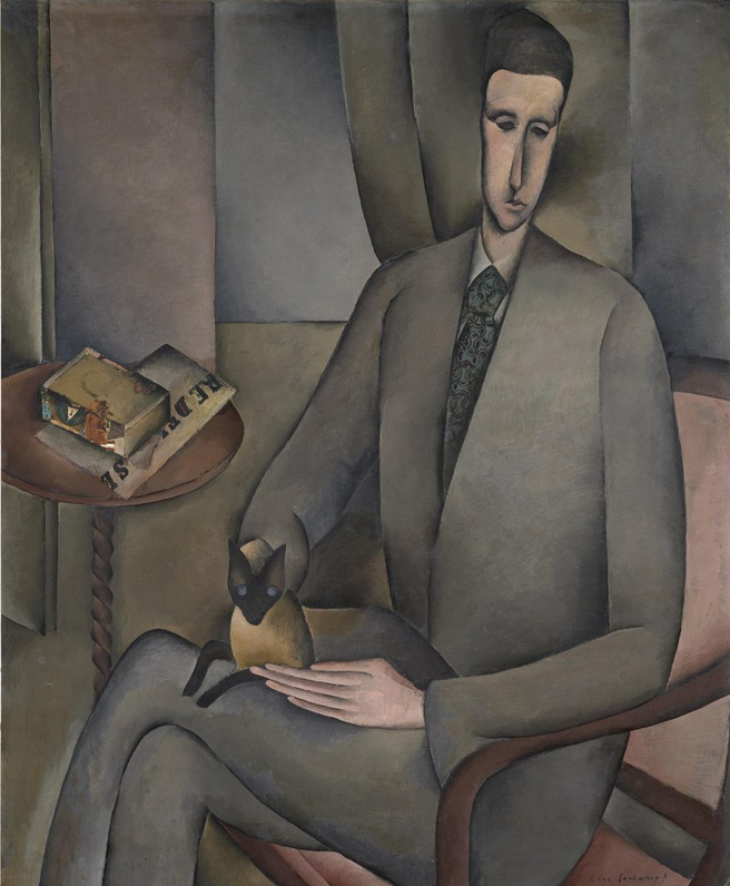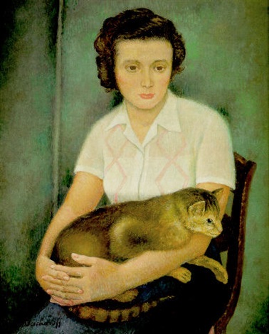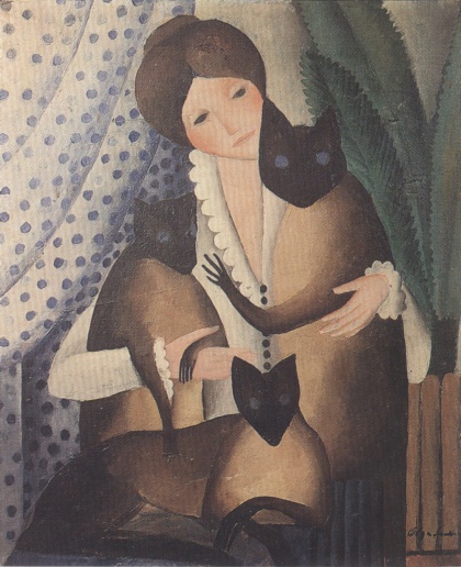 En 1924 pintó el famoso “Autorretrato con jaula” (Museu d’Art de Catalunya) y otros dos cuadros con gatos, “El paseo” y “Consuelo”. Quizá sea de la misma época “Autorretrato con gatos siameses”. Este último es muy curioso, como lo es “El paseo”, donde una elegante mujer protegida por una sombrilla lleva a un siamés en brazos. El gato sentado en el regazo de Arthur Cravan también es un siamés. ¿Tenía la artista predilección por esta raza?
