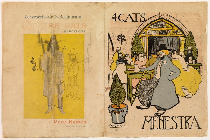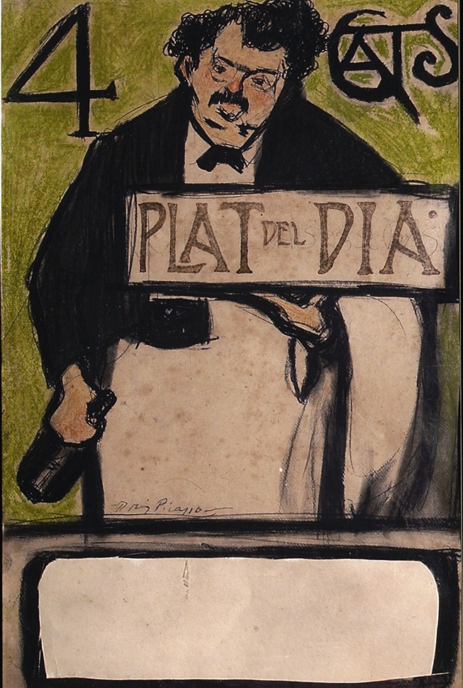 Picasso debió empezó a frecuentar el local a los 19 o 20 años. Pere Romeu se dio cuenta de su talento y le encargó varios trabajos gráficos, hasta entonces responsabilidad de Ramón Casas. En 1900, Picasso dibujó el menú con un personaje central, el perfecto bohemio de la época con sombrero de ala ancha y pelo largo. También realizó el cartel que anunciaba el plato del día.