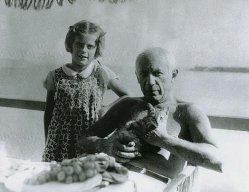 En 1954, su amigo el pintor Carlos Nadal le hace una foto con un gato en brazos en la casa de Vallauris, Provenza. Alejandro, el hijo de Carlos Nadal, regaló esta foto al Museu Picasso de Barcelona en julio de 2010.