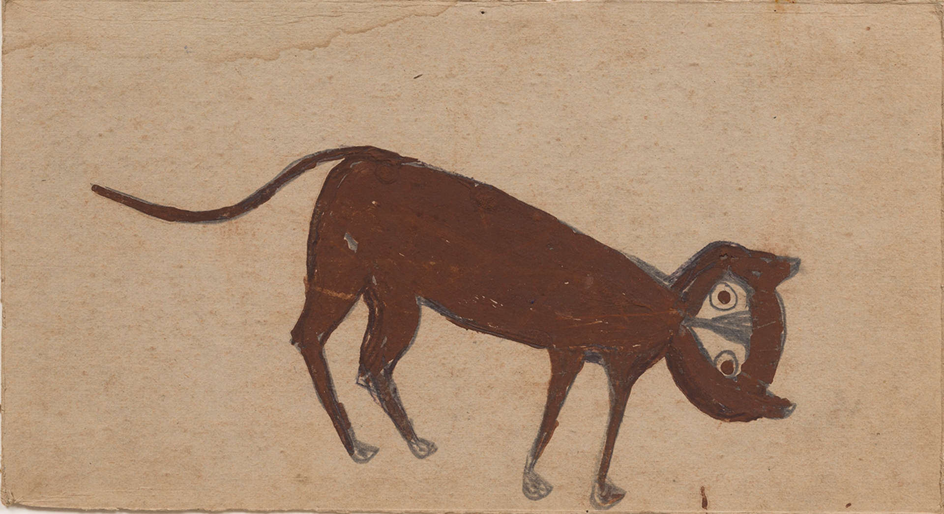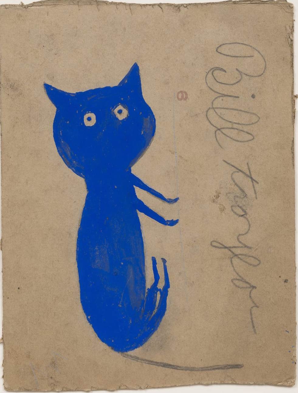 Aunque Bill Traylor jamás aprendió a escribir, alguien debió enseñarle a firmar porque en algunos cuadros está su nombre en letras grandes. Muchos de sus personajes llevan un sombrero de copa que recuerda al del famoso Baron Samedi, el loa de la muerte de los ritos vudú. También parecen señalar con el dedo índice, ¿o se trata de un cuchillo? Hay gatos enmascarados, gatos moteados, gatos que no parecen gatos…