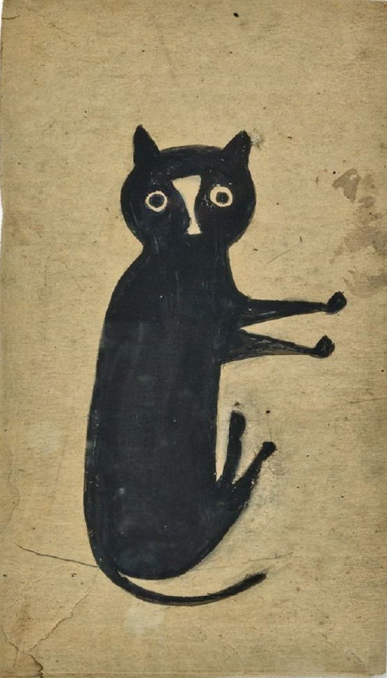 Bill Traylot es uno de los tres grandes artistas de arte marginal de Estados Unidos. Los otros son Martín Ramírez (1895-1963), procedente de México e internado en un hospital psiquiátrico de California, y Herny Darger (1892-1973), bedel en un hospital de Chicago, pero al contrario del artista del que hablaremos hoy, ninguno de los dos dibujó gatos.