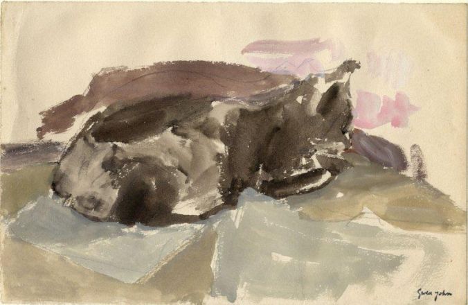 Al mudarse a París, Gwen John vivió en la calle Edgar Quinet, concretamente en el nº 19, y aquí es donde conoció a su primera gata, una tricolor a la que dio el nombre de la calle. Como puede verse en los dibujos y cuadros de gatos que incluimos, la mayoría son de la gata Edgar Quinet. En 1908, Edgar Quinet desapareció y no volvió jamás, algo que la entristeció profundamente. La pintora hizo numerosos retratos de su gata y solía llevarla con ella cuando iba a dibujar al bosque de Saint Cloud. Edgar Quinet ya se había escapado en julio, y volvió a repetir la hazaña en agosto cuando desapareció entre los matorrales. La pintora se había hecho una especie de cueva, escondida entre los grandes árboles. Al desaparecer Edgar Quinet, empezó a ir cada tarde con la esperanza de que la gata volvería.