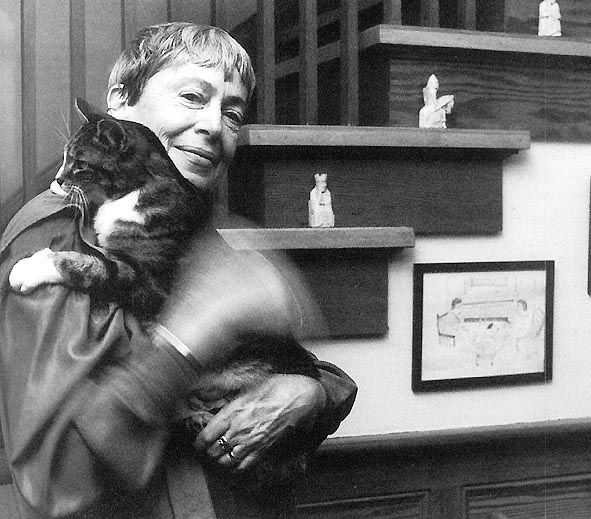 En 2010 empezó un blog (http://www.ursulakleguin.com/Blog-Index.html) cuya última entrada es un poema escrito en 1991 “cuando la Unión Soviética se estaba desintegrando”. Y dentro de este blog están los anales de Pard, un gato vestido con un impecable esmoquin. En la penúltima entrada, titulada “Pard y la máquina del tiempo”, explica que su gato ha descubierto por fin la verdadera utilidad del escáner: el lugar perfecto para echarse la siesta. Porque, como dice la escritora, los gatos no necesitan una máquina para viajar en el tiempo, un momento están aquí con nosotros, y al siguiente ya no, aunque la transición suele ser imperceptible.
