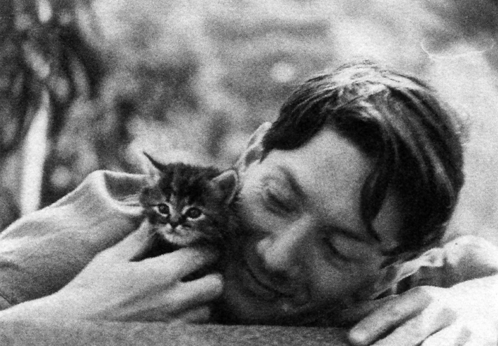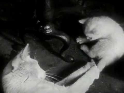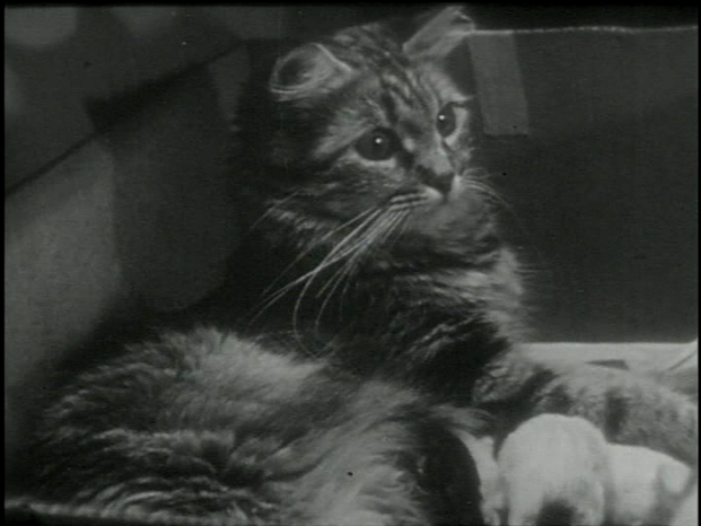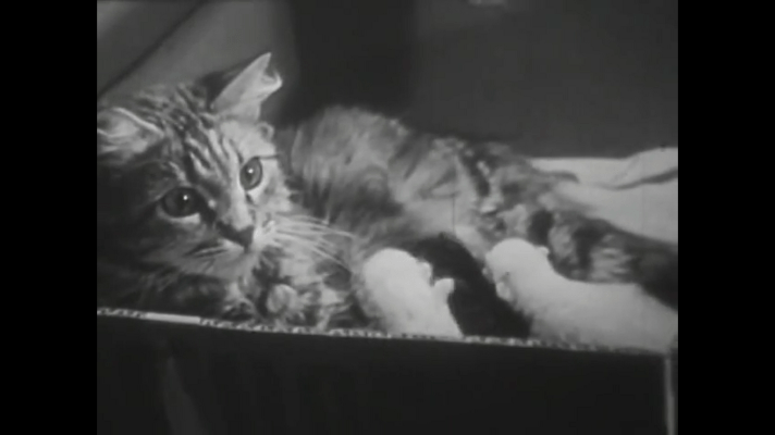 “The Private Life of a Cat” (La vida privada de una gata) es una película muda que incluso carece de música, una pequeña obra de arte con momentos tiernos y otros cómicos. Los protagonistas son Él, un gato totalmente blanco, y Ella, una gata atigrada que debió tener un antepasado persa. El documental dura exactamente 22 minutos en los que vemos la relación entre Él y Ella, el nacimiento de cinco gatitos (4 blancos y un atigrado) en primerísimos planos, cómo los cuida Ella y la curiosidad de Él. En un momento dado, Ella decide transportar a los gatitos desde la caja donde nacieron a una chimenea que solo sirve de decoración. Durante la mayoría del traslado, Él lo observa todo desde el sofá, intrigadísimo. Un poco después en la película, aunque debieron pasar unos días, Él enseña a los gatitos a trepar. Como siempre en cualquier camada hay uno o dos más listos que los demás. Ella contempla las lecciones de Él a una cierta distancia, casi podría decirse con satisfacción.
