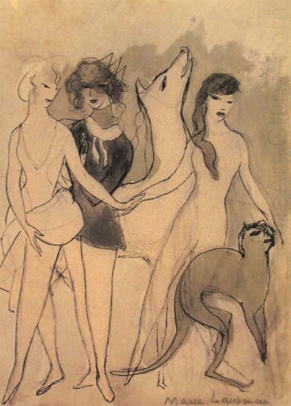En 1914 se casó con el pintor alemán Otto von Wätgen, convirtiéndose en alemana y en baronesa con una renta anual de 40.000 francos. Alemania declaró la guerra a Francia muy poco después y se vieron obligados a huir. Von Wätgen no tenía la menor intención de servir como oficial en las filas prusianas, por lo que se trasladaron a Madrid y conocieron a la marquesa Cecilia de Madrazo. De Madrid fueron a Málaga y posteriormente a Barcelona. A principios de 1918, la pareja aceptó la invitación de Cecilia de Madrazo, que les cedió un piso enfrente del Prado donde se quedaron un año. Fue una época en la que Marie pintó poco, pero pasaba largas horas en el Prado contemplando los cuadros de Velázquez, El Greco y Goya, al que admiraba profundamente. En Madrid se enteró de la muerte de Guillaume Apollinaire. El poeta había fallecido el 9 de noviembre de 1918 bajo el cuadro que ella había pintado y que sus amigos colgaron encima de su cama en el hospital.