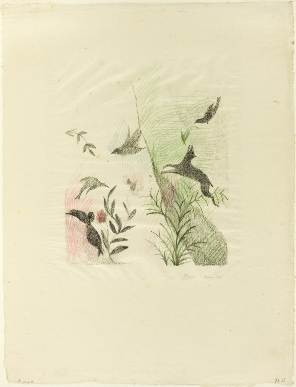 Marie Laurencin, nacida el 31 de octubre de 1883 en París, está estrechamente unida al nacimiento del arte moderno. Fue discípula de Georges Braque, musa de Guillaume Apollinaire, amiga de Pablo Picasso y amante de Nicole Groult, la famosa diseñadora de moda. Su muy particular estilo, descrito como “ninfismo”, va más allá del fauvismo y del cubismo; de hecho, es totalmente personal. La fama que alcanzó en el periodo comprendido entre las dos guerras mundiales se vio ensombrecida por la vida mundana que llevó en París durante la ocupación alemana. Quizá esto explique que se celebraran tan pocas exposiciones suyas, incluso después de su muerte en 1956, y que casi se la olvidara. Por fin, en 2011, Bertrand Meyer-Stabley exploró los claroscuros de su vida en una biografía, y el museo Marmottan Monet de París expuso su obra entre febrero y junio de 2013.