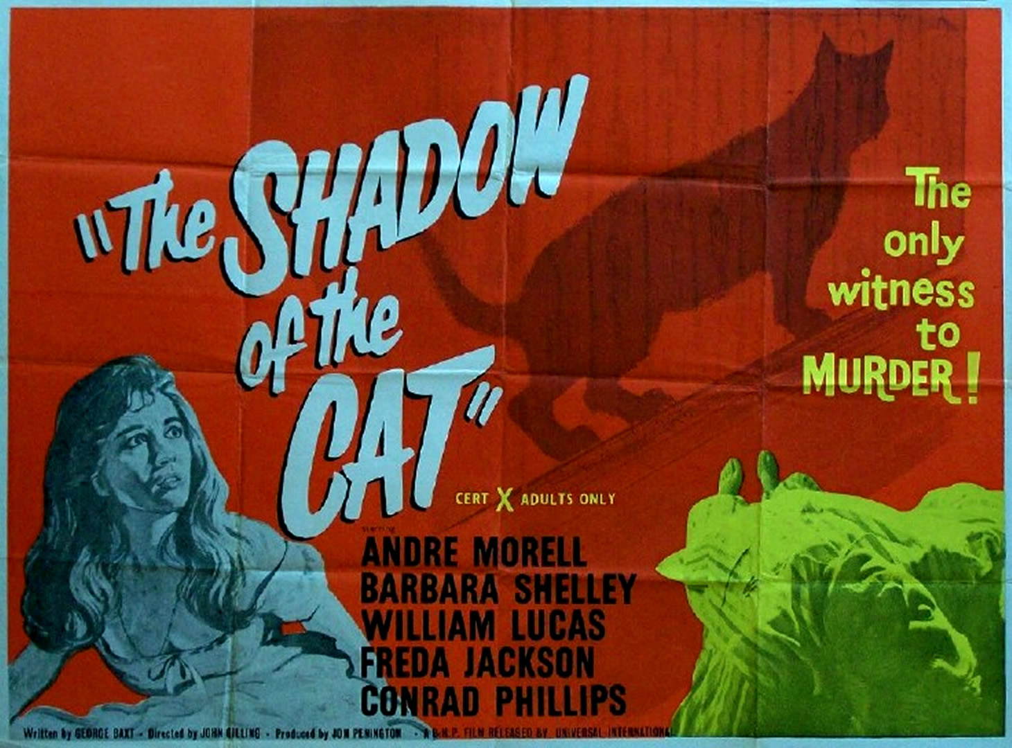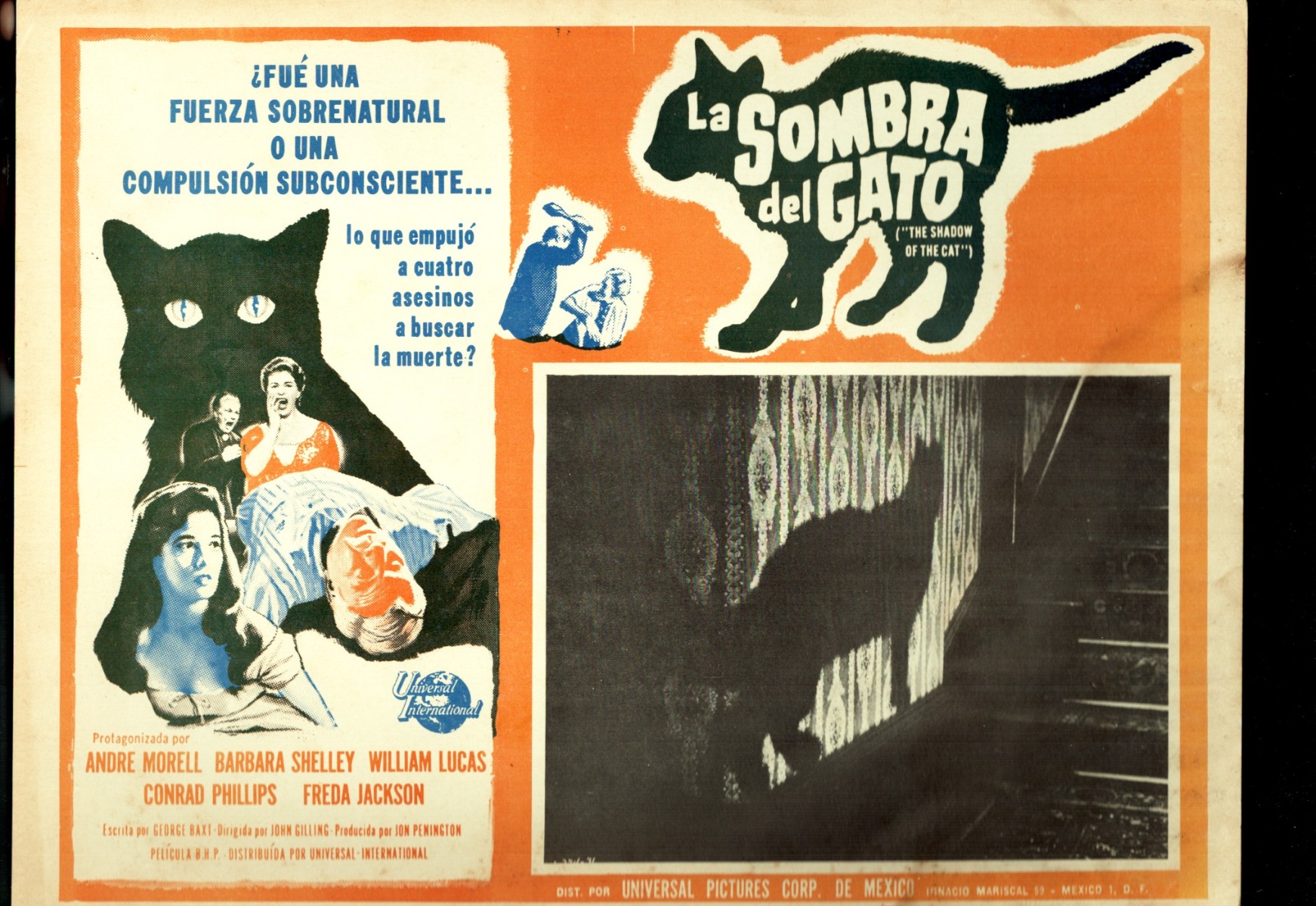 Esta película británica de 1961, titulada originalmente “The Shadow of the Cat”, es una producción Hammer, aunque el nombre de la productora no consta en los créditos por razones contractuales. Normalmente, una película de terror al estilo gótico se habría rodado en color en esa época, pero no fue así. El realizador es John Gilling, un habitual de la productora, como lo es el director de fotografía Arthur Grant, y los protagonistas André Morell y Barbara Shelley. La película no llegó a estrenarse en España, pero sí en México, Brasil, Francia, Alemania Occidental, Suecia y Grecia, entre otros países.